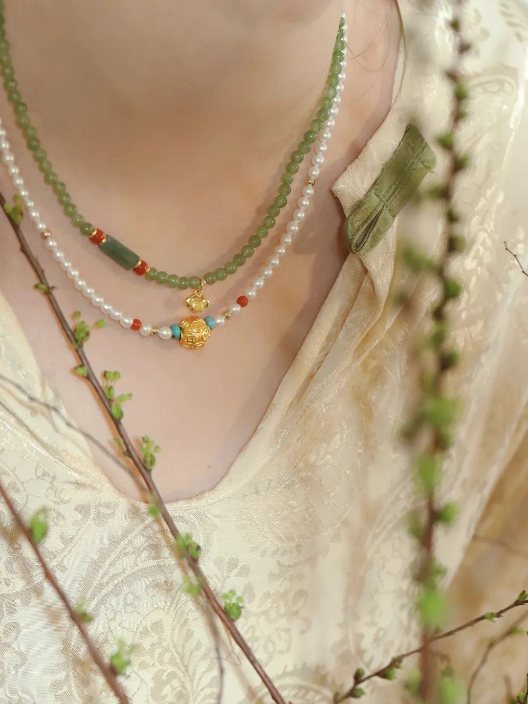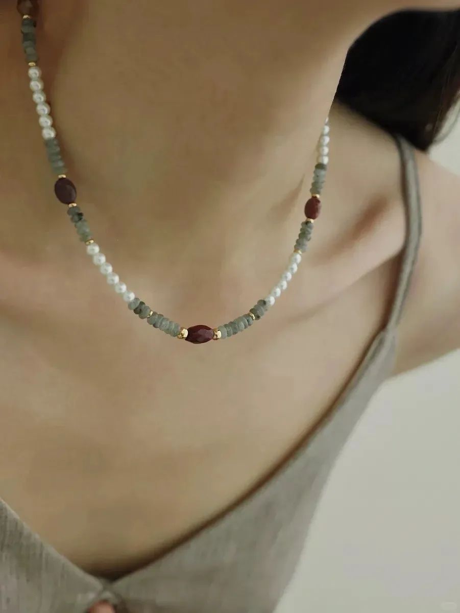与南红,绿松、檀香等撞色搭配起来,既复古又有光泽,体验了一把“既要又要”的快感!