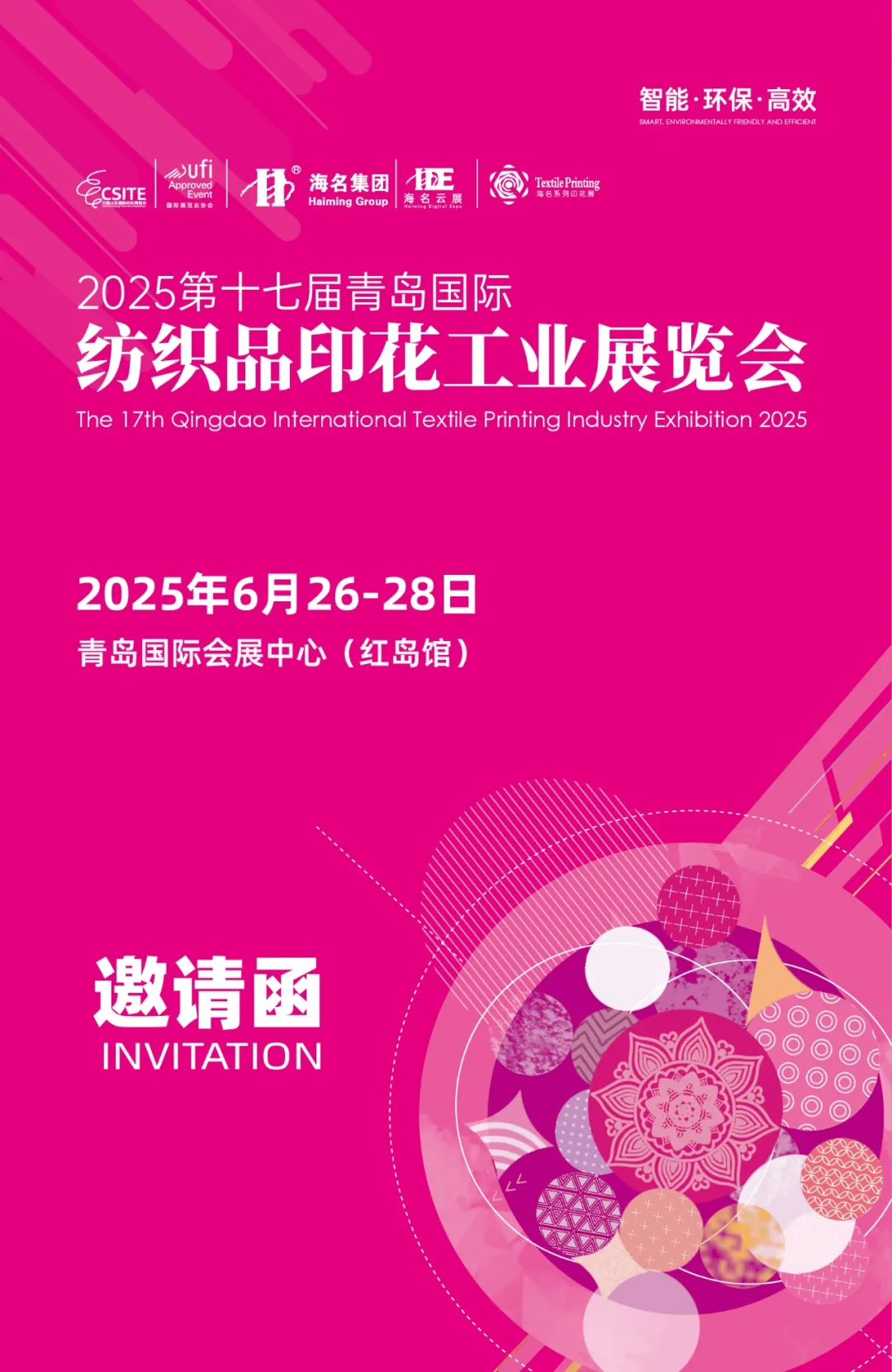 由青岛海名国际会展有限公司主办的2025第十七届青岛国际纺织品印花工业博览会」(以下简称青岛印花展)已定档2025年6月26-28日,在青岛国际会展中心(红岛馆)举办!展出内容涵盖工业级数码印花设备、数码+椭圆印花机、数码跑台直喷机、丝网印设备、标签及包装印刷设备、环保印花材料、墨水及热转印纸耗材、印花加工、纺织通用设备及零部件等在内的十多个小类。最新的设备,先进的技术展示,名企齐聚,打造中国纺织品印花盛事。