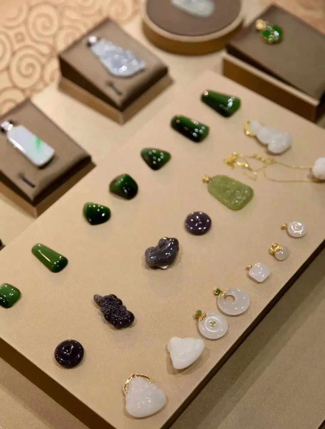 现已形成和田玉及翡翠中高端项链,雕刻件,手镯,独家镶嵌设计为主业的全发展格局。