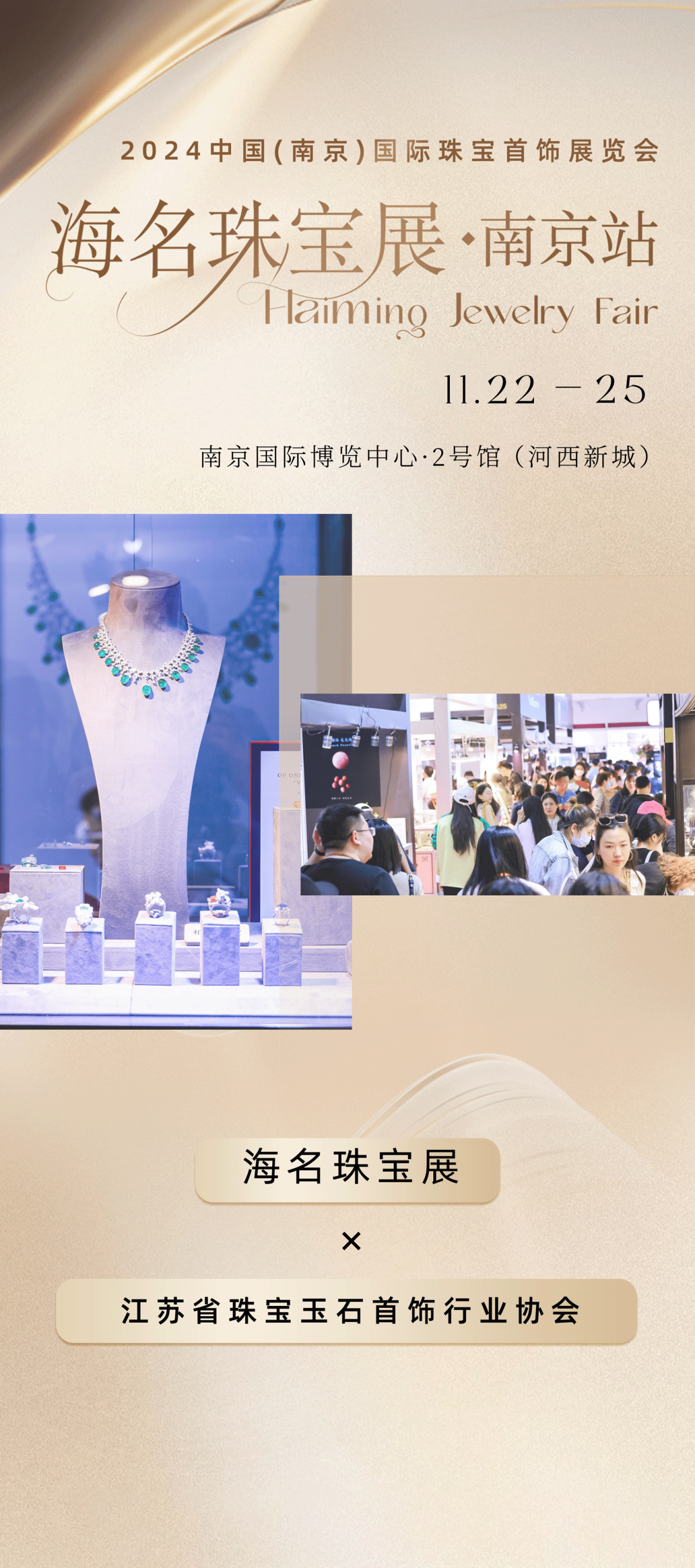 2024中国(南京)国际珠宝首饰展览会(以下简称海名珠宝展·南京站)将于2024年11月22-25日在南京国际博览中心(南京市建邺区江东中路300号)举行。