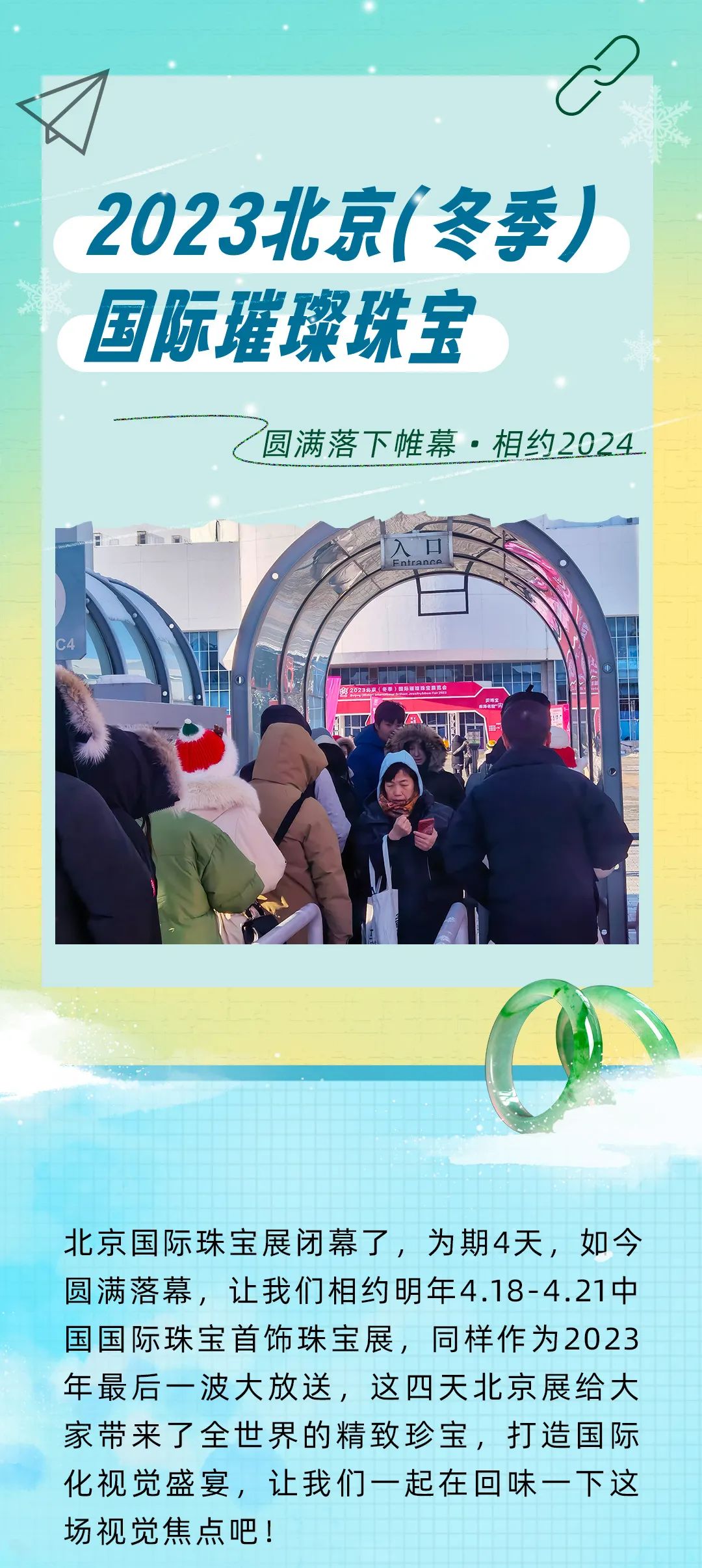 很多观众冒着风雪,和自己的闺蜜来到现场挑选心仪的珠宝。