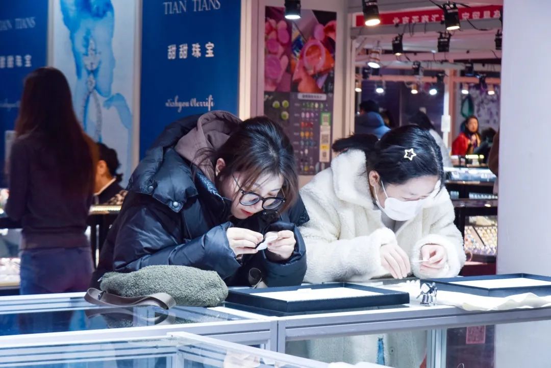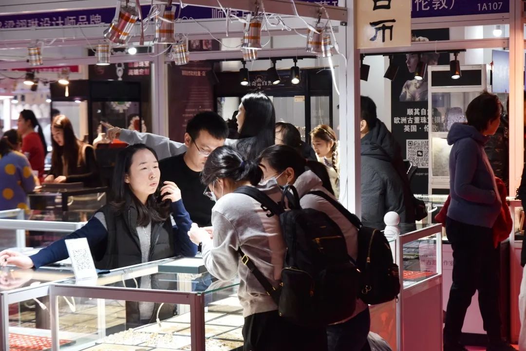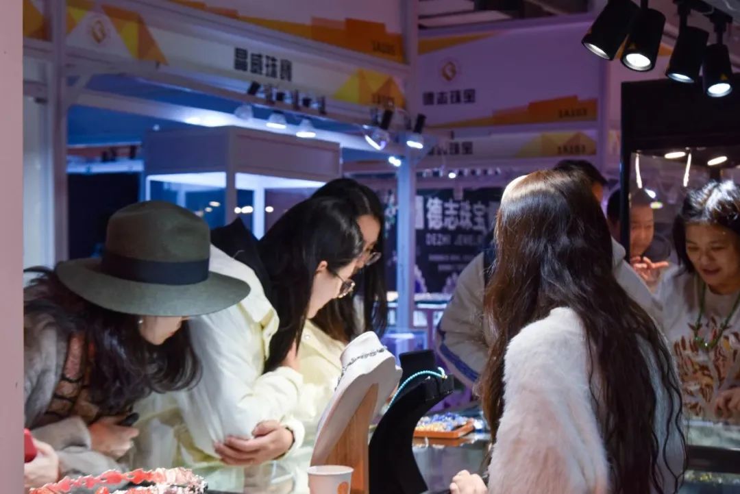 亲朋好友结伴而行来参加展会,购买心仪的珠宝首饰。