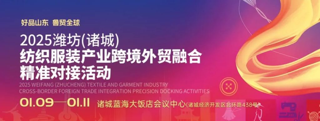 01 活动介绍 2025潍坊(诸城)纺织服装产业跨境外贸融合精准对接活动将在1月9-11日诸城蓝海大饭店会议中 […]