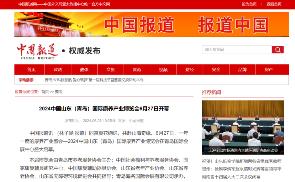 媒体聚焦|中国报道:2024中国山东(青岛)国际康养产业博览会6月27日开幕